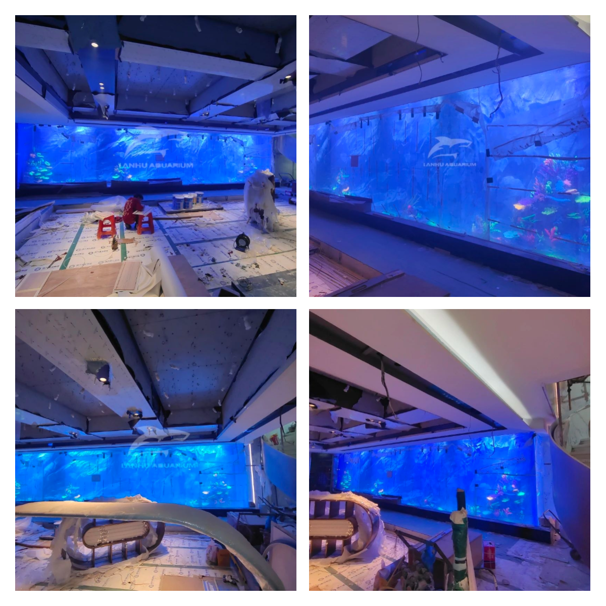 蓝湖水族以适应不断更迭的市场需求,从材料、基层、隐蔽、面层以及整体装饰效果每一个环节进行预验收及正式验收,保障从亚克力板材研发与生产、到安装再到维生系统都严格执行行业标准。